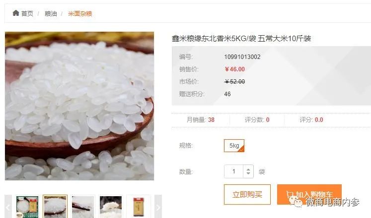 我们再以“鑫米粮缘东北香米 5KG/袋”为例,该产品在包你火商城上的售价为53.9元。
