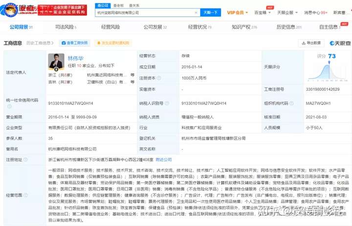 据天眼查显示,“变啦”的主体运营公司杭州变啦网络科技有限公司成立于2016年1月14日,位于浙江省杭州市钱塘新区下沙街道万晶湖畔中心西区2幢408室,注册资本1000万,实缴不详,法人代表林伟华,变啦科技(白山)有限公司为公司的最大股东,持股100%。