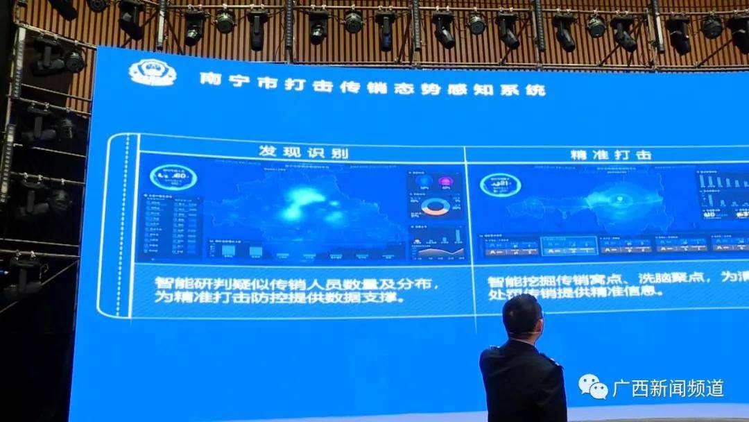 南宁市公安局经济犯罪侦查支队三大队大队长 熊伟:智能识别在南宁的外省籍人员谁在搞传销。第二个,精准打击,智能挖掘出传销窝点在哪里。第三个,管理评估,智能监控被我们打了的传销组织往哪跑。