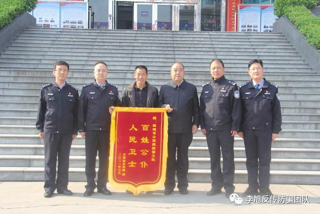 近日,韩城市板桥镇共峪村村民将一面写有“百姓公仆人民卫士”的锦旗送到韩城市公安局,感谢民警快速调查,帮他挽回经济损失。