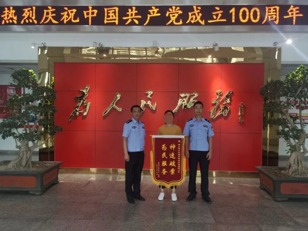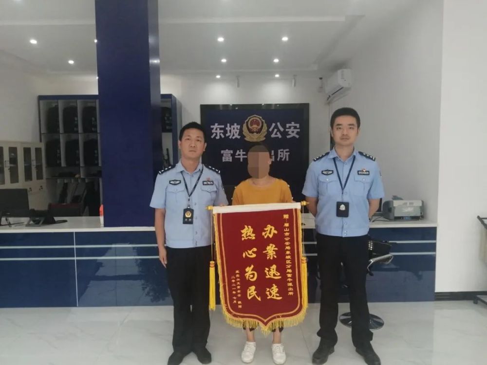 7月5日,唐女士送来两面内容为“神速破案,为民服务。”“办案迅速,热心为民”的锦旗,对东坡刑警和富牛民警表达朴实的感激之情。