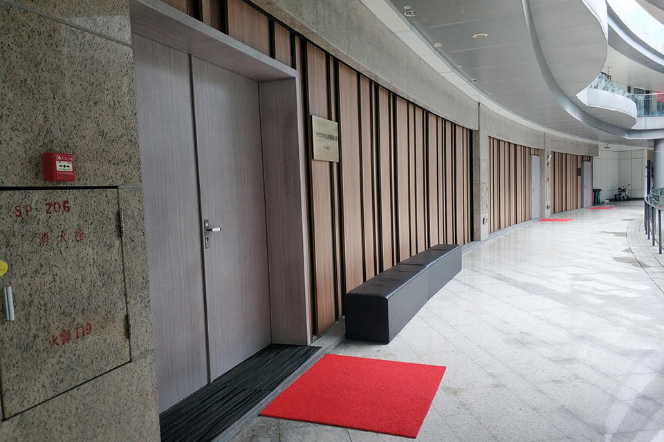 广州市番禺区一处商场内的教练技术培训场所,外部被木头封得严严实实,外人无法看到里面的场景。 (南方周末实习生 吴超/图)