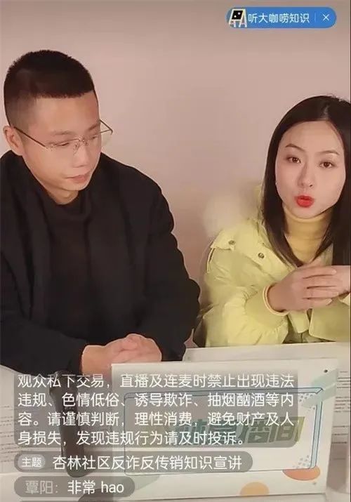 12月5日,在反诈反传销知识问答直播中,刘国伟与社区主持人覃艳一起为直播间的观众们讲解了关于法律层面上对于诈骗和传销的定义。