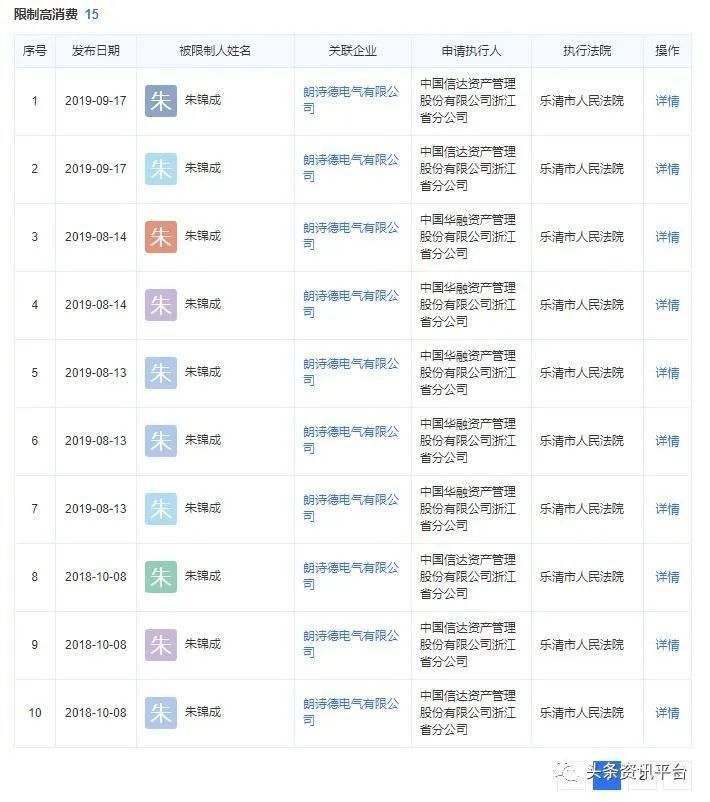 调查发现,朱锦成名下的朗诗德电气有限公司与浙江朗诗德科技有限公司在近年来都曾多次被乐清市人民法院列入失信被执行人名单。