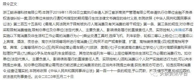 至于朱锦成本人,近年来,也已被法院出示了限制消费令多次。