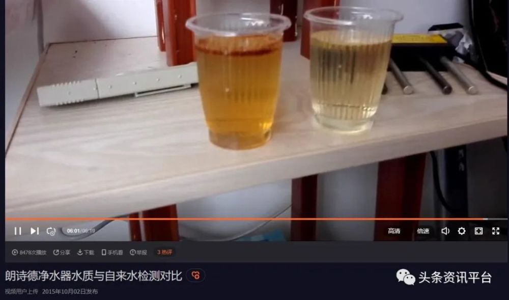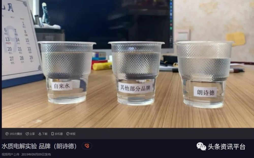 值得一提的是,在某视频网站上,我们还看到了一则关于朗诗德的“水质电解实验”的视频。