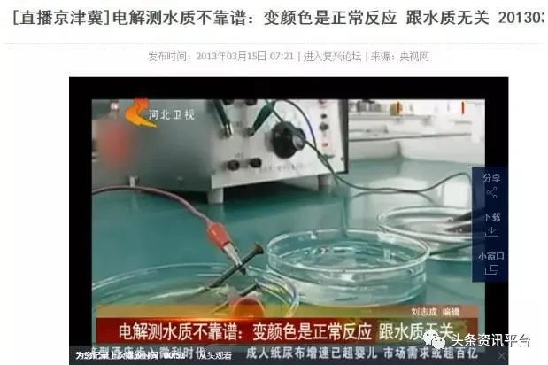 除了在网络上,还有人在现实中也见识到了这样的实验。有当事人在网上如此反映道:“昨天有个朗诗德的推销员来推销净水器,就是用水质电解器使水变色,然后声称自来水有很多重金属,为了健康请购买净水器,刚开始我也相信了,今天上网一查才知道,这个根本不能证明水质的好坏,只能证明水里有杂质……”