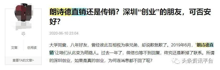在本篇报道中,我们了解到了朱锦成与朗诗德公司所存在的一些问题,以及朗诗德的营销模式是怎样的,在下篇报道中,我们所将重点关注的是网友们关于朗诗德的投诉事件,请继续关注头条资讯平台。