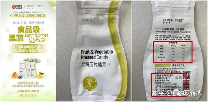 本网查询发现,上述“无限畅燃脂豆”实为坚实型压片糖果,属于普通食品,该产品包装显示配料为抗性糊精、褐藻胶、白芸豆粉、复合果蔬粉、赤藓糖醇、食品添加剂(硬脂酸镁)。