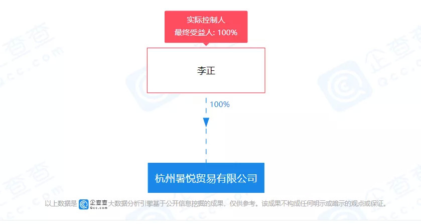据企查查显示,杭州暑悦贸易有限公司成立于2019年9月3日,注册资本为280万元,李正担任法人,2019年12月10日,该公司法定代表人姚伟变为李正。