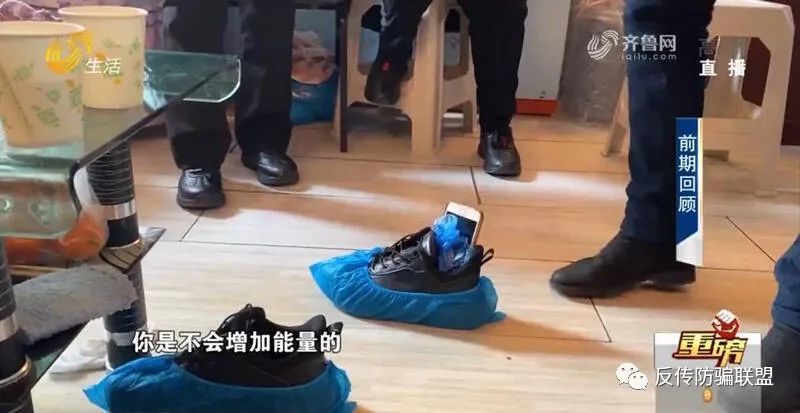 见到杨先生和记者,店里的工作人员就对鞋子的功效做起了宣传,为了让我们相信,还特意做起了实验:“因为你手机是自己身份证办的,(鞋)知道咱本人,还有穿透性,知道的同时,它穿透性会立马把这个能量传给你,你就不用穿鞋别人搭你身上也是一样的,假如说 是别人的身份证放上,你是不会增加能量的,它(鞋)一试不是你,它不会给你传递能量。”