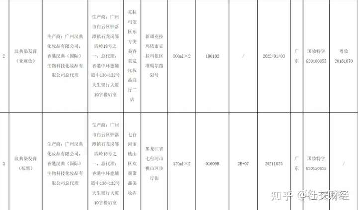 2019年11月28日,国家药监局公布24批次假冒化妆品,其中包含汉典染发膏(亚麻色)、汉典染发膏(棕黑)。
