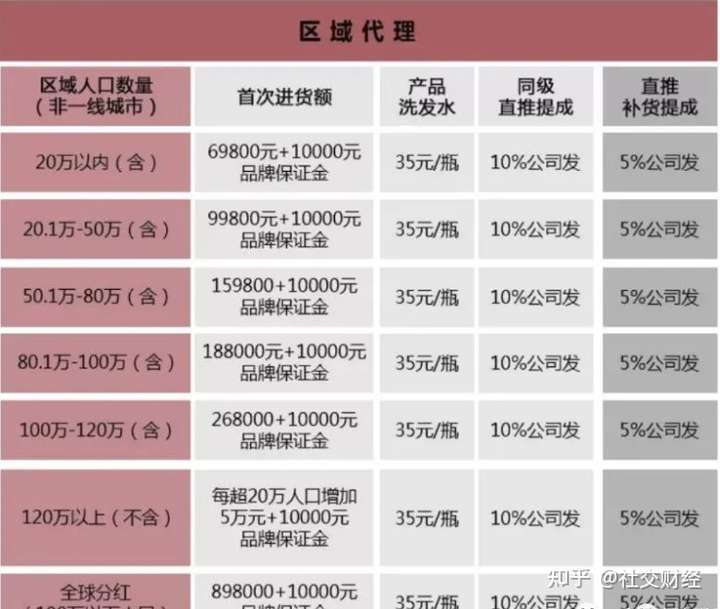 据悉,安徽共享共赢公司代理模式有区域代理:根据区域人口数量不同,首次进货额从79800(含保证金10000元)元到908000元不等,获得35元/不等的产品拿货价。获得同级直推提成10%和直推补货提成5%的收益。另外根据首次进货额度的不同分为零售、优惠顾客、VIP顾客、品牌加盟商、批发商等6个级别。VIP顾客、品牌加盟商、批发商几个级别的同级直推提成10%和直推补货提成5%收益由直属上级发放。