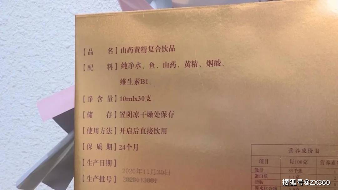 长生露又名山药黄精复合饮品,配料包括纯净水、鱼、山药、黄精、烟酸、维生素B1。