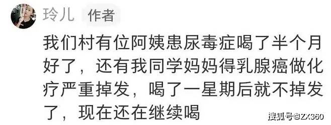 在小红书上,一位名叫“玲儿”的人声称,她们村里有一位阿姨得了尿毒症,喝了半个月好了,还可以调理通风、乳腺癌。