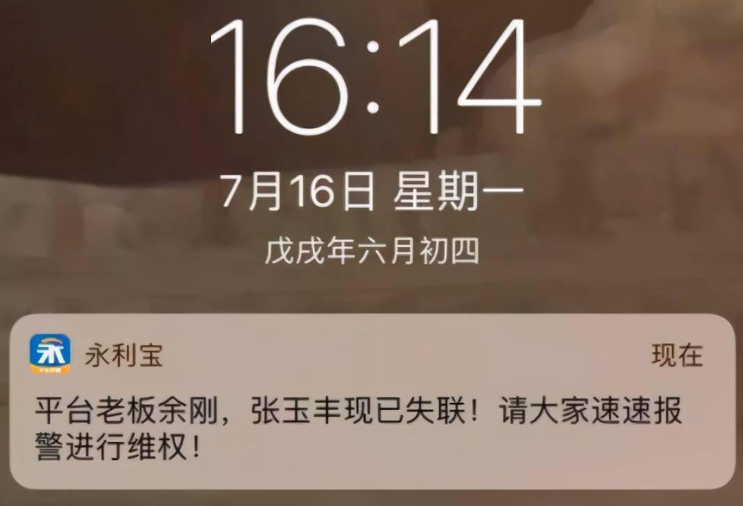 回溯来看,2018年7月16日,永利宝员工在自家APP上发送消息弹窗,称董事长余刚和首席执行官张玉丰失去了联系,请大家速速报警进行维权。