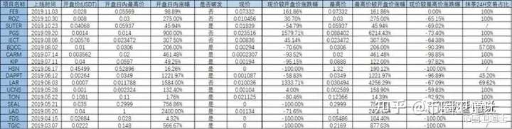 抹茶在2019年,上架了的首发项目中,不乏涨幅逾1000%的项目,比如PGS(6214.43%)、DAPPT(1221.97%)、LAR(4256.29%)、LAD(2400.00%)。