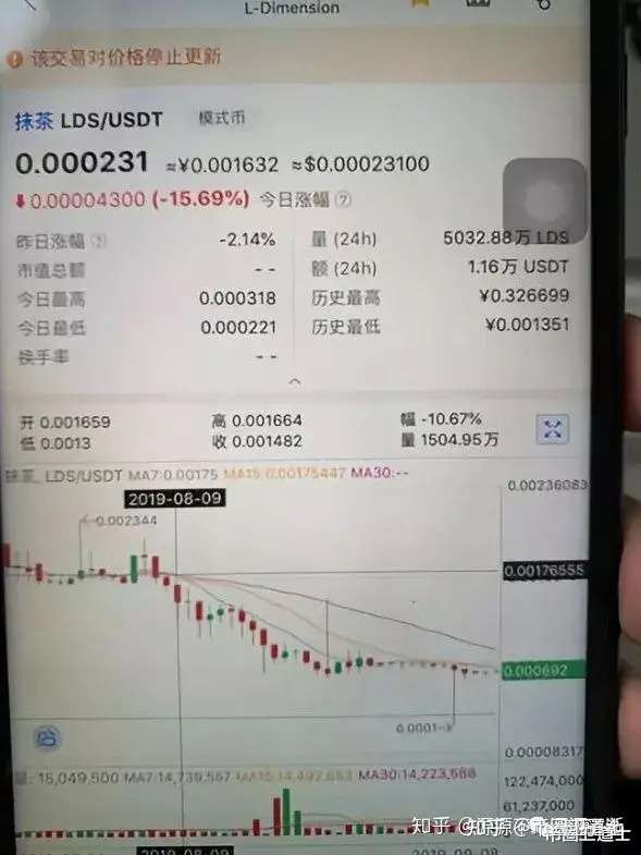 2020年6月11日抹茶上线的LDS价格是4分,一直涨到1毛。谁料,7月11日LDS在上线一个月后的那天夜里,抹茶将LDS砸盘至归零最后下架!