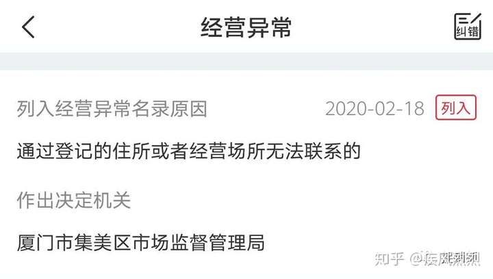 值得一提的是,厦门颜美贸易因通过登记的住所或者经营场所无法联系被厦门集美区市场监管局列入异常。