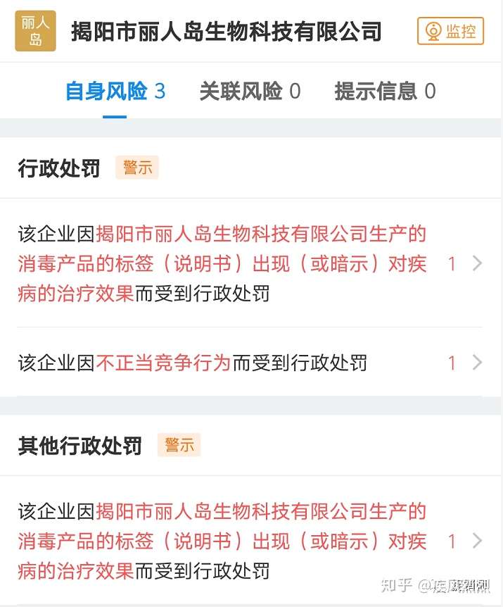 另外早在2016年,揭阳市丽人岛生物科技有限公司因不正当竞争行为遭当地工商管理部门罚款20000元。