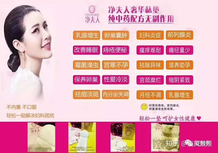 在净夫人奢华护垫的宣传材料中写道:净夫人可以调理宫颈糜烂、霉菌滴虫、细菌性阴道炎、子宫淤血、肌瘤囊肿、盆腔炎及盆腔积液、附件炎、输卵管堵塞、白带异常、瘙痒异味、阴道松弛、月经不调、宫寒痛经、不易受孕者等,在调理的同时可以保养卵巢,缩阴,产后修复等。