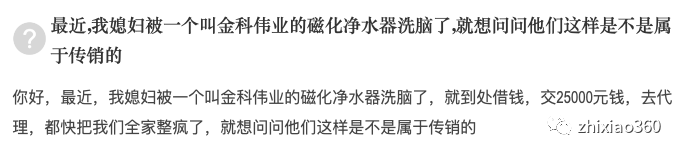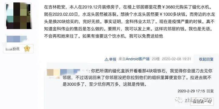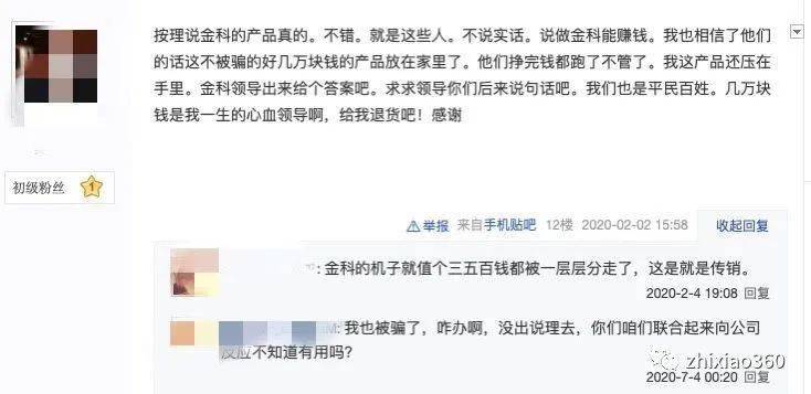 2020年在网络平台上还能看到有大量的经销商被骗的一些经历,基本都是被上级经销商忽悠购买金科高磁化水器,并向他们传递能能快速赚钱暴富运作模式,然而这些受害者花了钱买了金科磁化水器后,其上面的推荐人就什么事也不管,只管拉人头发展下线赚钱。