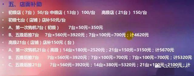 高级21台(店铺)店补150元(台)