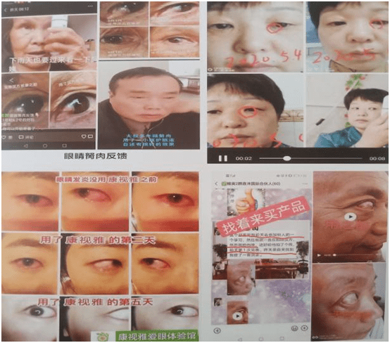 在会员群里,每天都在宣传产品的效果:如“好雾说明正在给你拨浊、好辣说明你眼部经络堵塞严重、好痒说明你眼部干涩疲劳、出水说明你眼部湿气太重、好热或红肿说明正在疏通经络、好凉说明开窍醒脑、清热解毒、好麻说明你眼部有痛症、眼屎多说明在清理眼部垃圾、没感觉恭喜你眼界清晰,养成日常爱眼护眼良好习惯。”