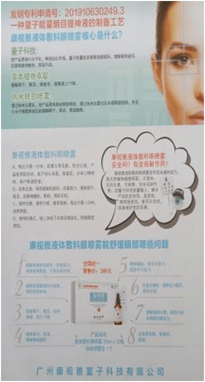模式是以奖金为诱惑,但只有奖金并不一定能推动模式的发展,还需要对产品进行“包装”,康视雅公司做到了这一点。康视雅产品宣传册中称:“广东省预防医学会推荐品牌”、 “白内障、胬肉、近视、流泪、眼涩、增强视清晰度、缓解眼干、预防眼部疾病预防近视、缓解调理真假性近视眼、黑眼圈、眼细纹、提神醒脑”