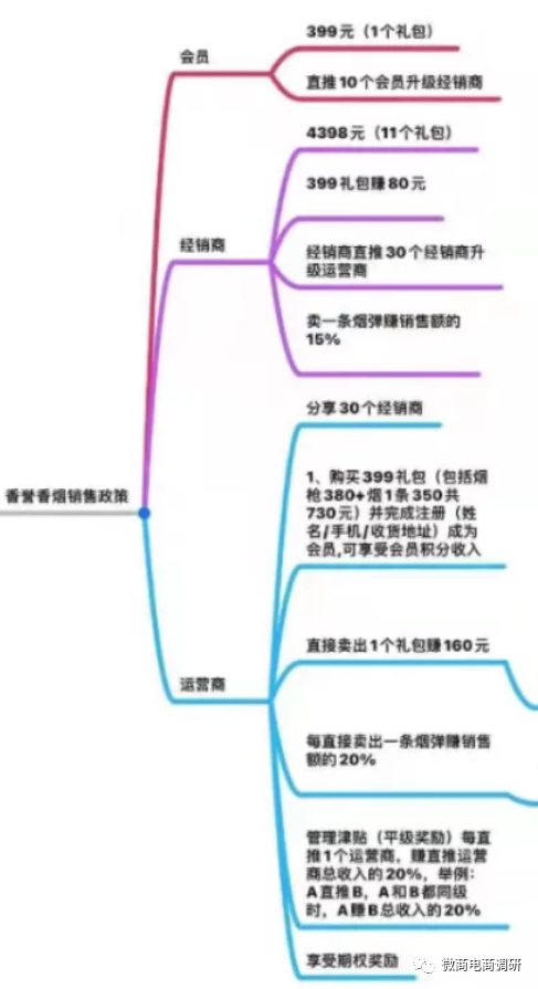 成为特约代理后,每卖出一个399礼包赚80元,特约代理每卖出一条烟弹赚销售额的15%,特约代理直推30个特约代理升级成为运营代理。