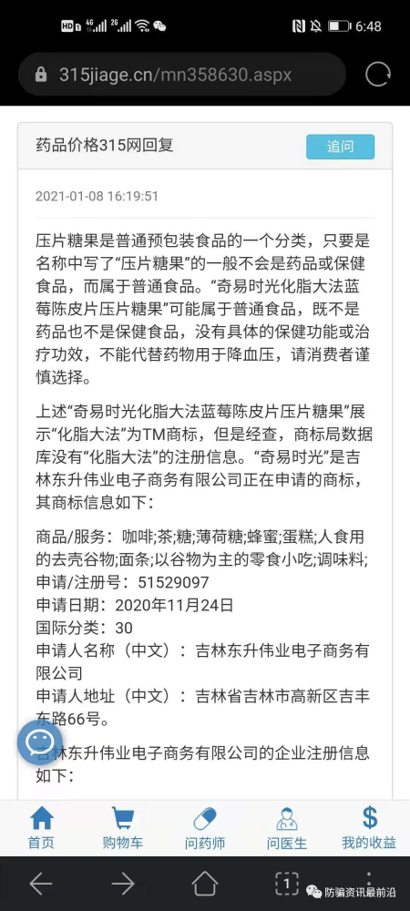 开始经营由东升伟业公司生产的相关产品。而现在最火的可以降血糖的化脂大法压片糖果在咨询药品315网给出的回复是