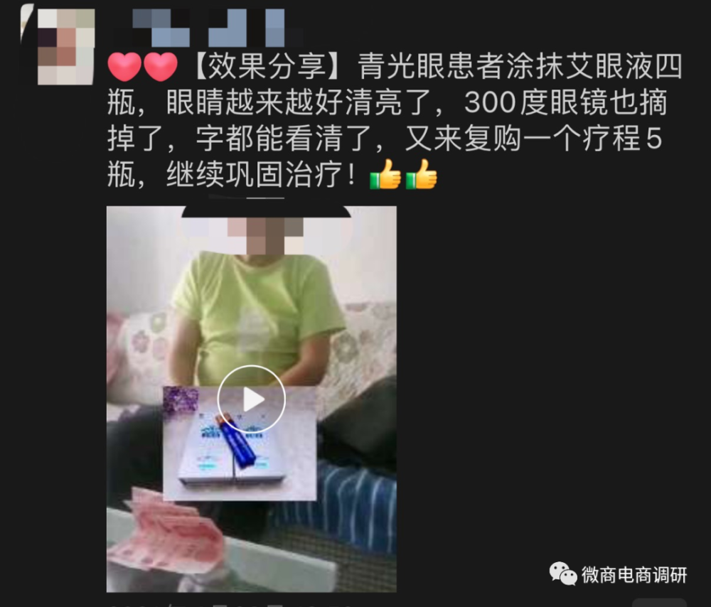 同样的,针对这款艾眼液也有许多案例:青光眼患者涂抹艾眼液四瓶后,眼睛越来越好了,三百度的眼镜能摘了,字也能看清了。