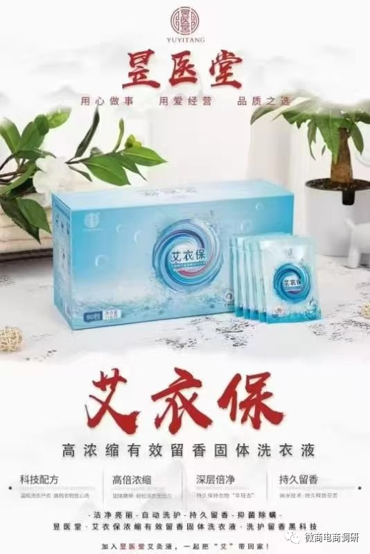 艾衣保与前面两款产品不同,主要用于日常洗衣,又叫做懒人洗衣颗粒,使用时最好用30度的温水,将艾衣保倒进水里化开,然后把衣物放进去浸泡40分钟左右,随后捞起来即可,无需手洗,简单方便。