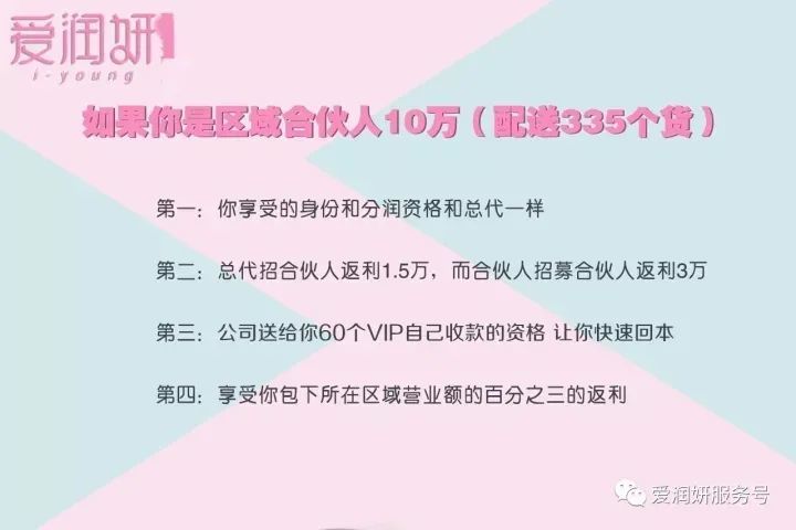 VIP会员外,爱润妍还设立了全国总代理和区域合伙人。