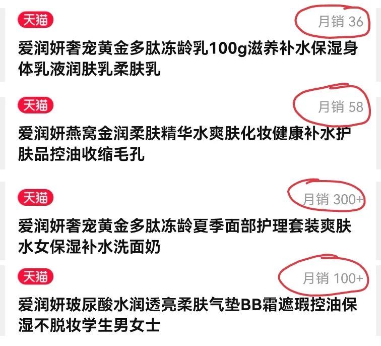 如今, 在某电商平台上的“爱润妍旗舰店”里,我们可以看到爱润妍多款产品销量十分惨淡,多的月销几百,少的月销只有几十。爱润妍在网络上的曝光量也越来越少,年轻一代的消费者更是对这个品牌闻所未闻。