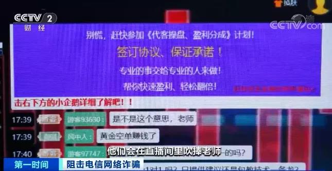 【“导师”直播教你炒期货?有人被坑80万元!受骗者自述经历!警惕这些套路】近日,浙江建德警方打掉了一个电信诈骗团伙,串并全国142起案件,涉案超3000万元。据了解,该案最大不同,就是多了一个直播间功能。直播间里还有冒充客户的业务员,他们会在直播间里吹捧老师,说跟着直播间老师操作赚了多少钱,同时也会把虚假的赚钱截图发到直播间里。客户如果相信直播间的老师,就会主动添加业务员,点对点跟业务员联系,业务员会教客户开户入金,有各种各样的广告,让客户不断地往里面投钱,业务员会按照公司话术一步一步对客户进行诈骗。(央视财经)