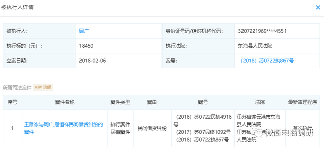 再往前追溯,早在2018年,周广就已被东海县人民法院列为了被执行人。