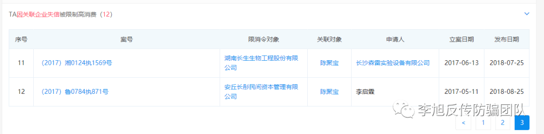 其中,山东长彤生物科技发展有限公司及湖南长生生物工程股份有限公司、安丘长彤民间资本管理有限公司,三家企业都因失信被限制高消费。
