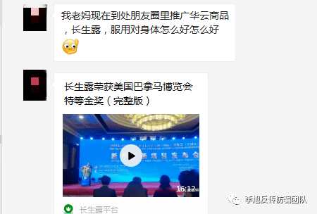 这是前不久一位求助者发来其母亲痴迷长生露经常讲到的案列。