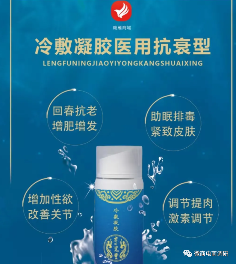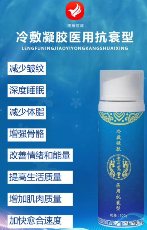 文章的最后,我们再来关注一下除小神吹之外,鹰雁商城所主打的另一款产品——“霁鸾堂冷敷凝胶医用抗衰型”。