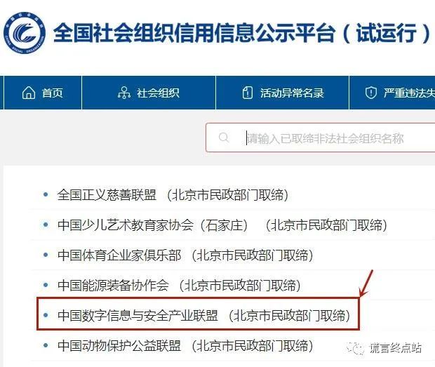 我们通过民政部“全国社会组织信用信息公示平台”(信度:5星级)进行查询: