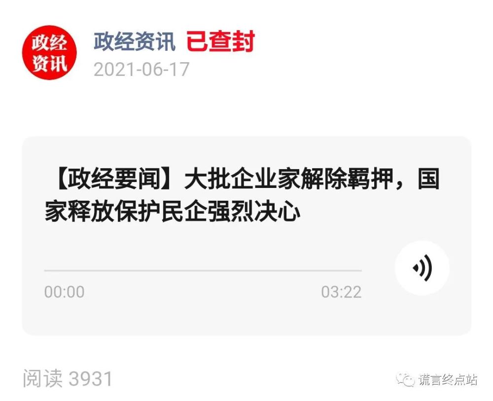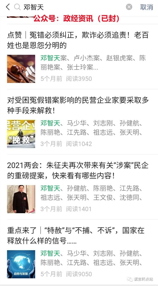 文中引用一大段国家政策或新闻,中间添加一段自编材料,再加个“标题党”。让读者误信文中的“自编材料”,将这些入狱的“传销大佬”误导为“含冤待平反”的“民营企业家”。这样,他们的目的就达成了!