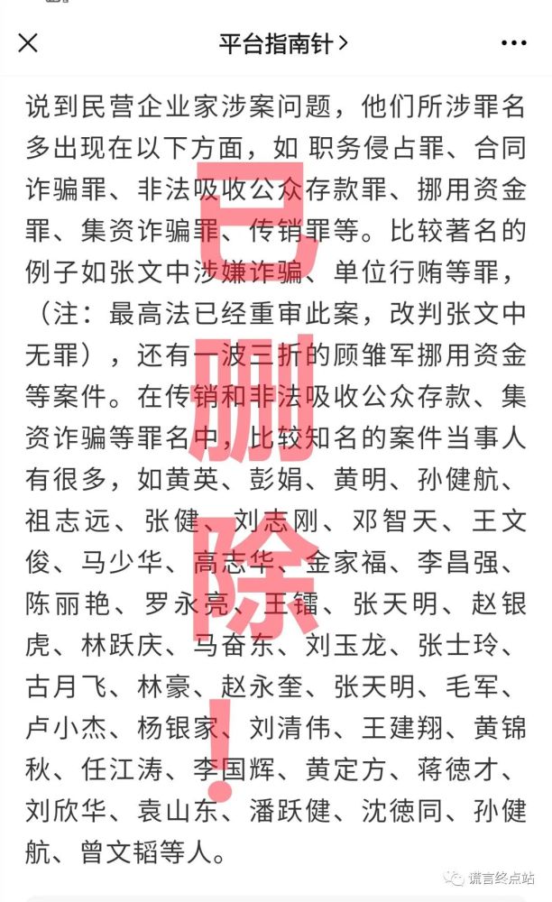 此外,公众号“平台指某针”近日已删除大量文章,目前已搜不到这一篇文章了!