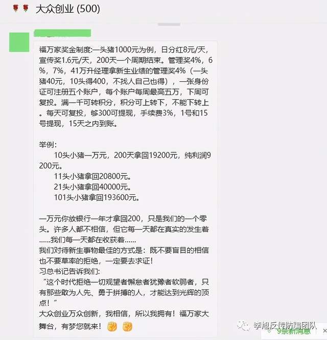 近日,有网友跟李旭反传销团队反馈称,有朋友推荐他参与一个养猪的项目,收益非常高,但怎么看都像是“非法集资”。李旭反传销团队编辑团队接到信息之后,对该项目进行了一番了解。