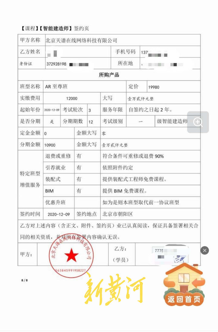新黄河记者加入“天普教育维权群”“天普教育投诉交流群”等多个QQ群发现,每个群均有两三百人,基本都是报考了消防工程师、BIM工程师、装配式工程师、智能建造师等,大家均反映“天普教育失联”“学费被骗”等情况,每人被骗少则万元,多则四五万元。“现在天普教育工作人员都联系不上了,网络课程停了,考试也没法考,学费找不到地方退。我们有十几个维权群,群里初步统计了一下,受骗学员遍布全国20多个省市,人数至少上万人。”众多学员向记者反馈。6月25日,北京12345曾回复学员反馈称:经核实,北京天谱同盛教育科技有限公司因涉嫌违法,其办公经营场所已无经营办公,公司相关工作人员已被江苏警方控制。相关消费退费纠纷建议通过司法途径解决。