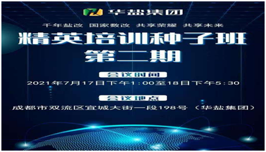 据了解,华盐集团第二期精英培训种子班将于7月17日-18日在华盐集团内部召开。