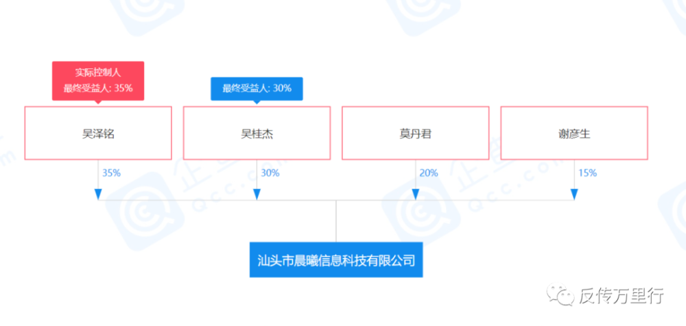 据企查查显示,汕头市晨曦信息科技有限公司注册于2015年1月29日,注册资金100万元,实际缴纳资本为0。法人代表为莫丹君。公司大股东及实际控制人为吴泽铭,持股比例为35%。公开资料介绍,晨曦科技是一家专注于母婴电子商务运作服务的公司,目的是帮助企业降低电子商务运作成本,为企业提供电子商务一站式解决方案。