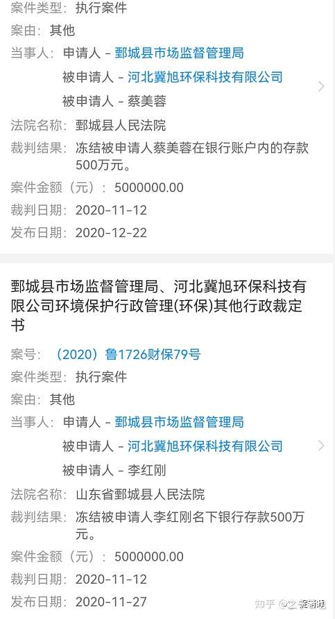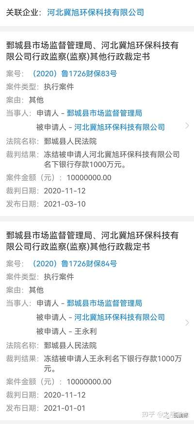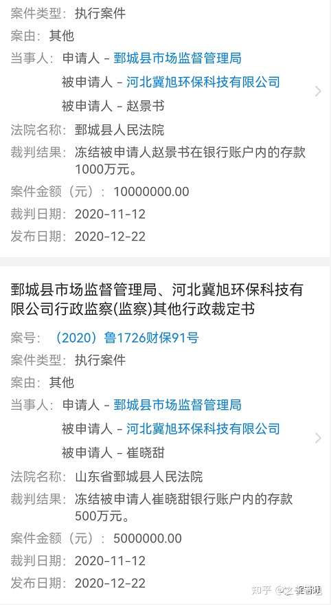 近日,捉销师在企查查APP留意到一则题为《鄄城县市场监督管理局、河北冀旭环保科技有限公司行政监察(监察)其他行政裁定书》,其中在一则裁判文书中提到,申请人申请人鄄城县市场监督管理局在查处被申请人河北冀旭环保科技有限公司涉嫌组织领导传销一案中,为防止被申请人转移或隐匿违法资金,申请人鄄城县市场监督管理局于2020年11月12日向本院提出申请,要求对被申请人的银行存款1000万元予以冻结。