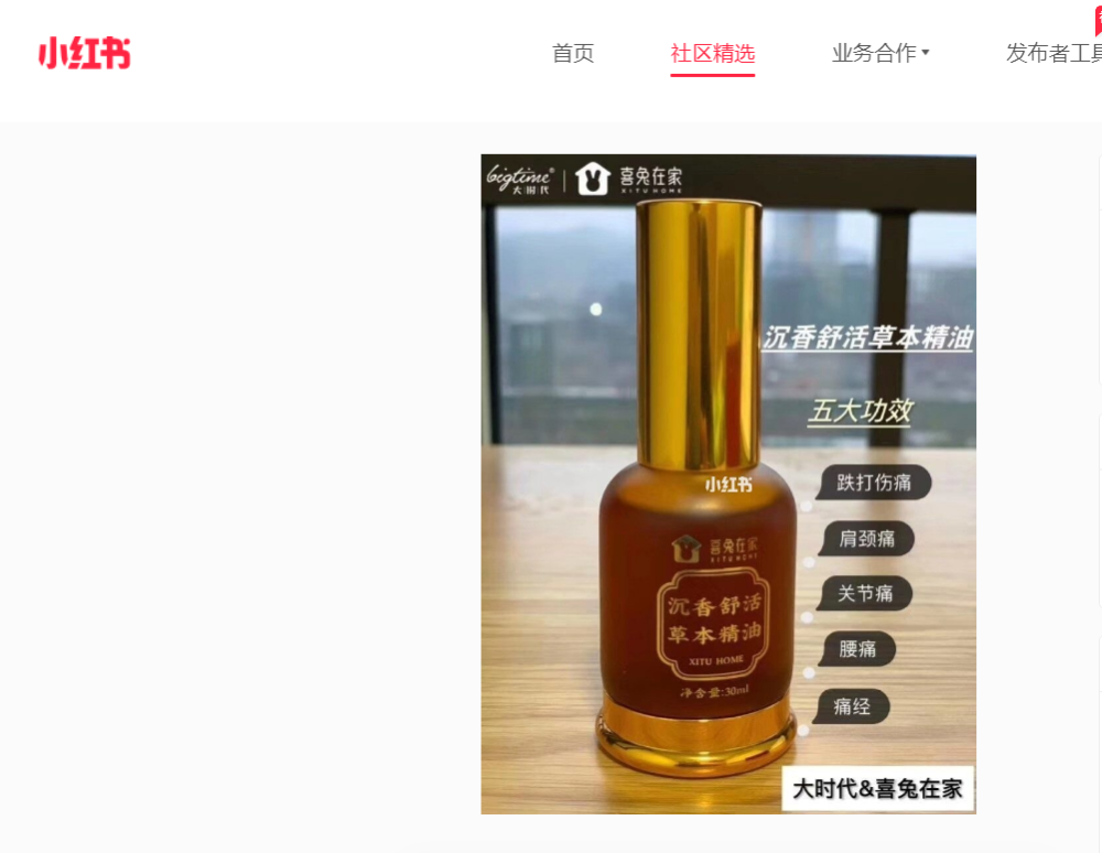 不少喜兔在家会员在微博发布沉香舒活草本精油的四大功效:活血化瘀、通经活络、补气养血、祛湿散寒。在“小红书”上,有会员直接宣传沉香舒活草本精油的主治五大痛症:跌打伤痛、肩颈痛、腰痛、关节痛、痛经。