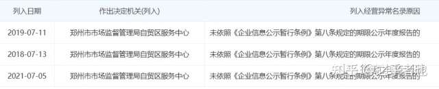 无独有偶,微达国际商业管理有限公司名下的另外一家子公司河南无与伦比电子商务有限公司也已因未依照《企业信息公示暂行条例》第八条规定的期限公示年度报告,连续三年被郑州市市场监督管理局自贸区服务中心列入企业经营异常名录,至今未被移除。
